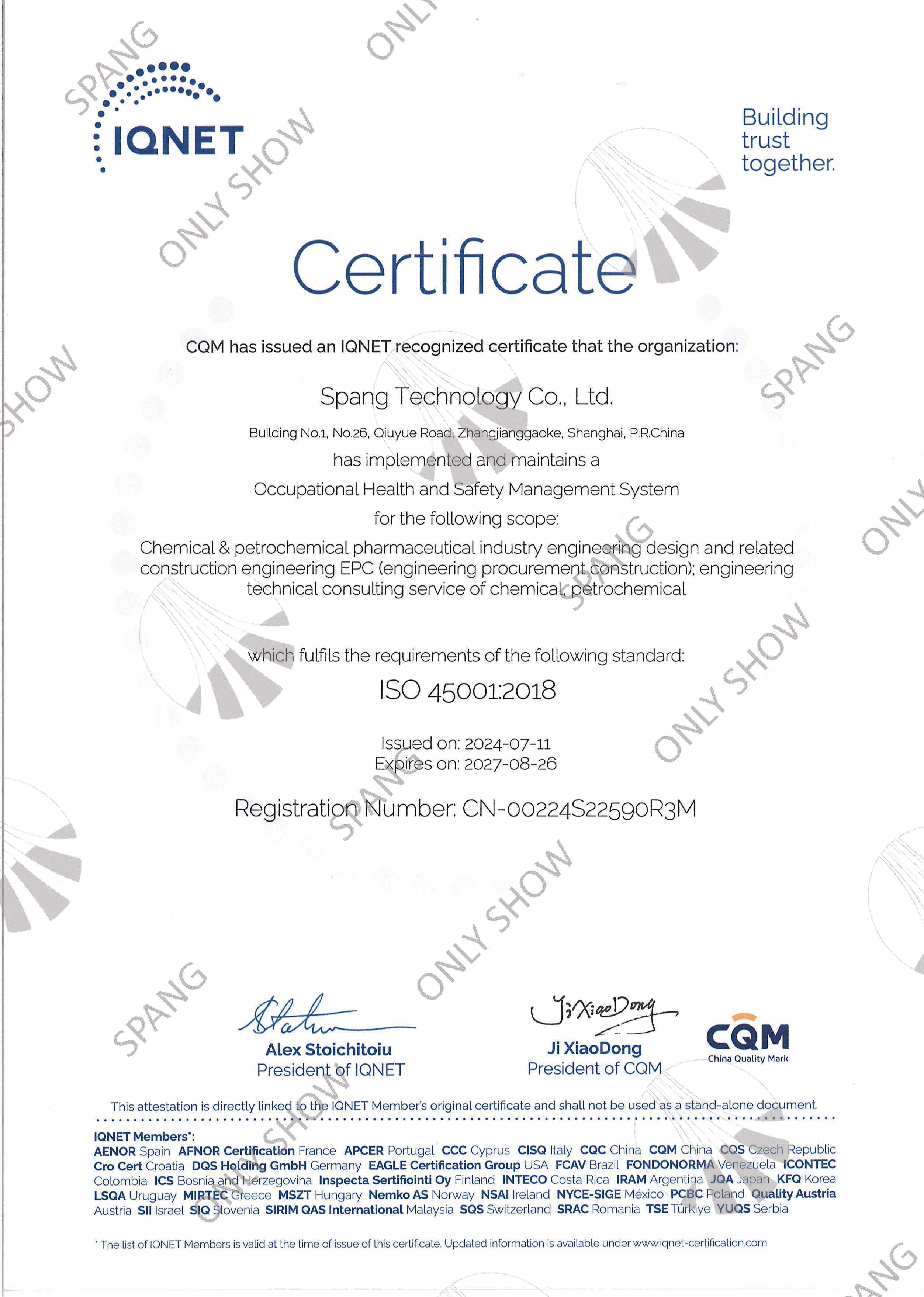 職業(yè)健康安全管理體系證書(英文版)-國際通用