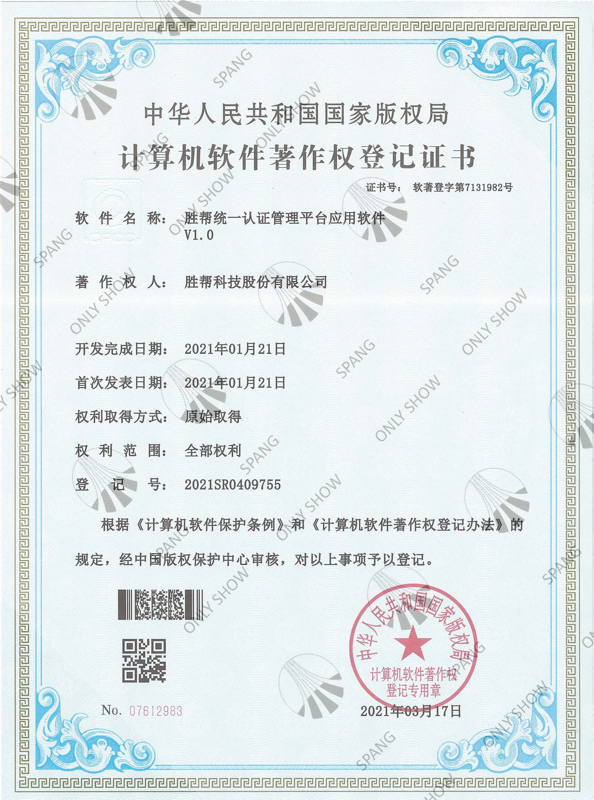 統(tǒng)一認(rèn)證管理平臺(tái)應(yīng)用軟件產(chǎn)品證書