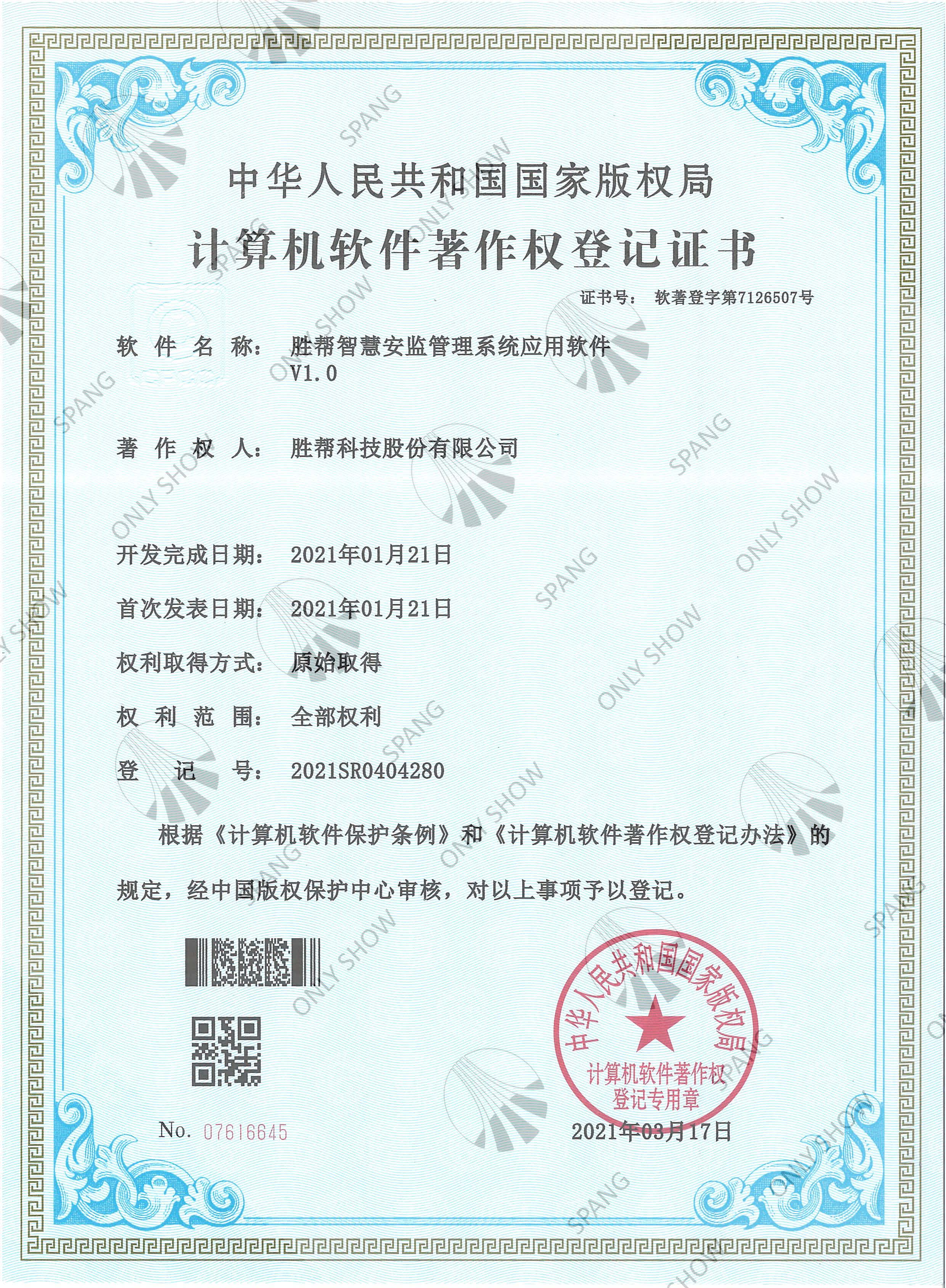 智慧安監(jiān)管理系統(tǒng)應(yīng)用軟件產(chǎn)品證書