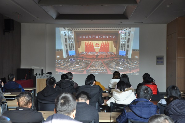 慶祝改革開放40周年大會于12月18日上午在北京人民大會堂隆重舉行。公司黨委組織全體黨員及中高層領(lǐng)導(dǎo)干部齊聚一樓培訓(xùn)室觀看大會直播?!捌饋恚〔辉缸雠`的人們!……”,隨著振奮人心的國歌聲響起,大會拉開了序幕。中共中央總書記、國家主席、中央軍委主席習(xí)近平出席大會并發(fā)表重要講話。大家全神貫注、聚精會神、認(rèn)真聆聽,共同見證激動人心的歷史時(shí)刻。1978年12月18日至201…