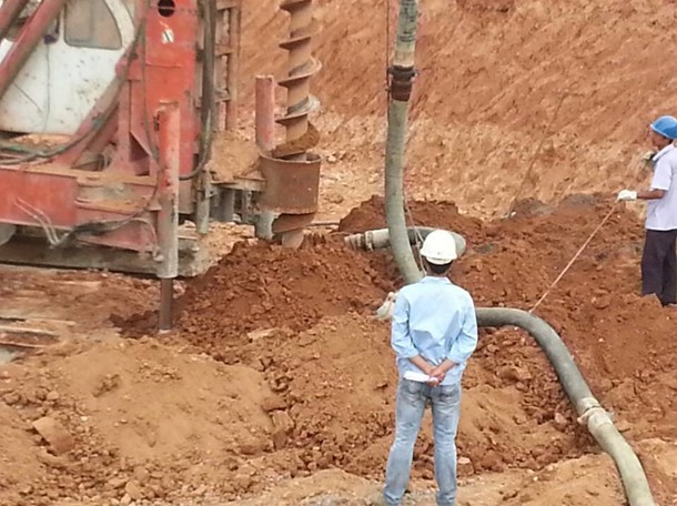 由于連續(xù)的雷雨天氣,場(chǎng)地泥濘不堪,施工人員根本無(wú)法進(jìn)入場(chǎng)地,導(dǎo)致焦炭塔和壓縮機(jī)廠房CFG樁基礎(chǔ)的開挖和打樁進(jìn)度滯后。期間又值東鑫垣整個(gè)廠區(qū)停電,打樁機(jī)維修,供電電壓不足,電纜線負(fù)荷不夠,地泵故障等等一系列突發(fā)情況。2013年8月4日下午,上海勝幫東鑫垣項(xiàng)目部人員帶領(lǐng)陜西建工機(jī)械公司披荊斬棘,排除萬(wàn)難,終于在13點(diǎn)34分時(shí)成功打下第一根CFG樁,經(jīng)現(xiàn)場(chǎng)測(cè)量符合施工標(biāo)高…