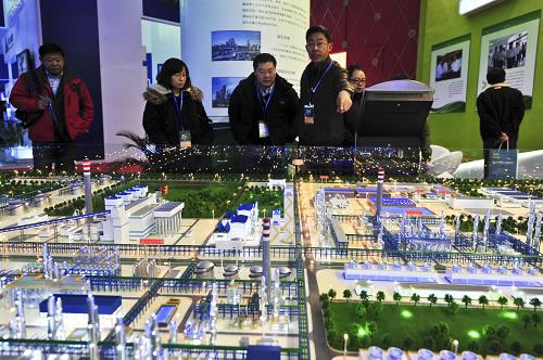 中國國際煤化工在展覽會上觀看了陜西煤業(yè)化工集團榆林能源化工綜合園區(qū)模型。 2012年12月6日中國國際煤化工展覽會在北京展覽館開幕。煤炭是我國的主要化石能源,也是許多重要化工品的主要原料,煤化工在能源、化工領域中有著重要地位,并越來越顯示出其優(yōu)勢,其在我國能源的可持續(xù)利用中扮演重要的角色,目前全國各地發(fā)展煤化工熱情空前高漲。借此次展會陜西煤業(yè)化工集團展示了“…