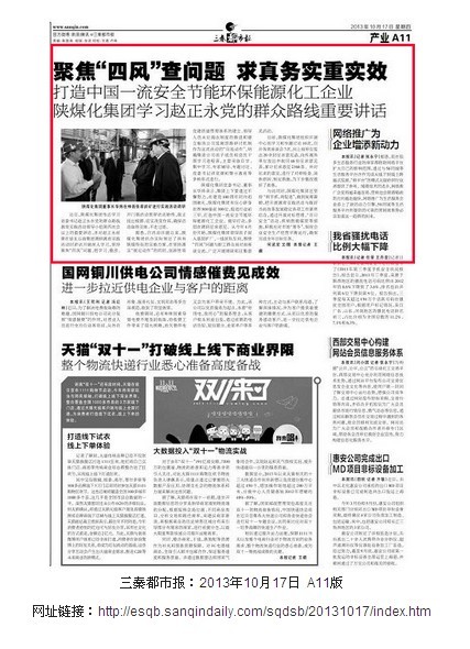 落實教育實踐活動 切實轉(zhuǎn)變工作作風 陜煤化集團召開2013年三季度科技創(chuàng)新工作例會 近日,陜煤化集團創(chuàng)新會議形式,以視頻會議的方式召開2013年三季度科技創(chuàng)新工作例會,總結三季度科技創(chuàng)新工作,安排部署四季度工作。陜煤化集團副總經(jīng)理尚建選、總經(jīng)理助理張超出席會議。技術研究院有關領導和部門負責人在集團辦公樓4樓主會場參加了會議,各單位主管科技工作的領導和科技工作者在…