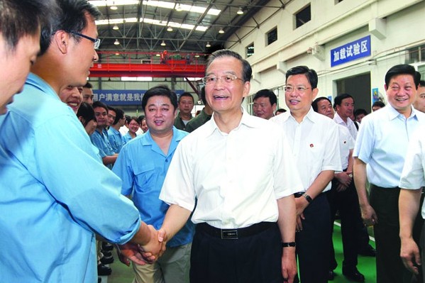 7月10日,中共中央政治局常委、國務(wù)院總理溫家寶在西安煤礦機(jī)械有限公司調(diào)研。7月9日至10日,中共中央政治局常委、國務(wù)院總理溫家寶在省委書記趙樂際和省委副書記、省長趙正永分別陪同下,先后來到我省咸陽、西安等地,訪農(nóng)戶、看超市,深入工廠農(nóng)村、物流公司,廣泛聽取基層干部群眾意見,就當(dāng)前經(jīng)濟(jì)運(yùn)行有關(guān)問題調(diào)研,并在西安主持召開山西、河南、四川、陜西四省經(jīng)濟(jì)形勢座談…