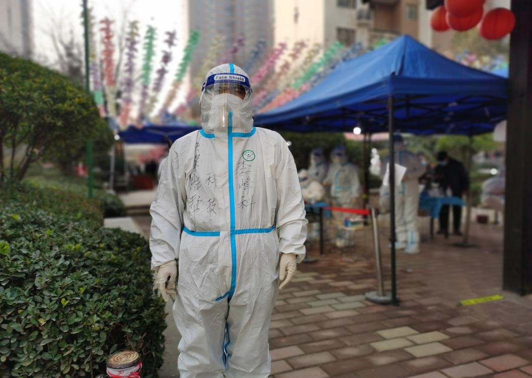 在抗疫志愿者活動(dòng)中,我們主要配合醫(yī)護(hù)人員完成西安航天基地富力城(南區(qū))小區(qū)核酸檢測(cè)工作。該小區(qū)是大型住宅區(qū),常駐人口眾多,達(dá)到將近6800名,因此核酸檢測(cè)工作任務(wù)嚴(yán)峻。每次核酸檢測(cè)時(shí),志愿者們都早早的在核酸檢測(cè)點(diǎn)準(zhǔn)備起來,穿好防護(hù)服、戴好口罩、手套、頭套、鞋套、面罩,經(jīng)過層層防護(hù)我們就武裝成了一名合格的抗疫“大白”,投入到緊張的工作之中。
