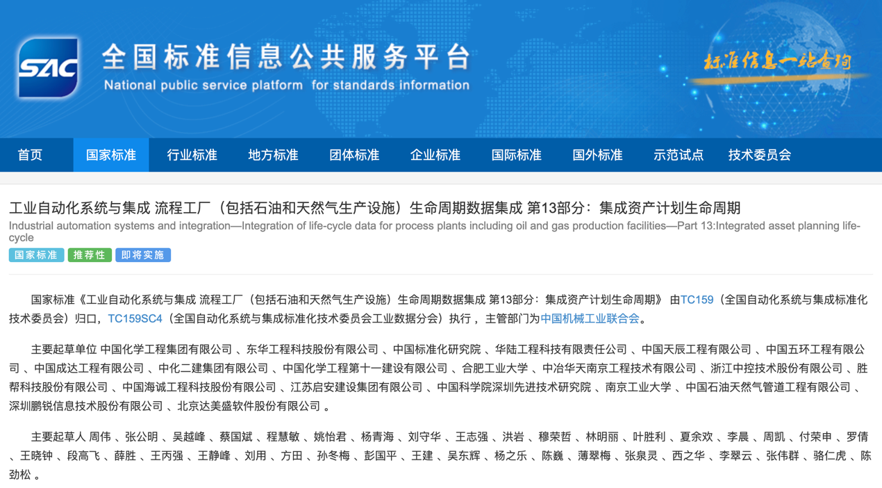 近日,由勝幫科技股份有限公司參與制定的又一項(xiàng)標(biāo)準(zhǔn)正式發(fā)布。該標(biāo)準(zhǔn)為國(guó)家標(biāo)準(zhǔn)《工業(yè)自動(dòng)化系統(tǒng)與集成 流程工廠(包括石油和天然氣生產(chǎn)設(shè)施)生命周期數(shù)據(jù)集成》第4部分:初始參考數(shù)據(jù)(GB/T 18975.4-2023)及第13部分:集成資產(chǎn)計(jì)劃生命周期(GB/T 18975.13-2023),已通過(guò)國(guó)家市場(chǎng)監(jiān)督管理總局(國(guó)家標(biāo)準(zhǔn)化管理委員會(huì))批準(zhǔn),于2023年9月7日正式發(fā)布,2024年4月1日起正式實(shí)施。