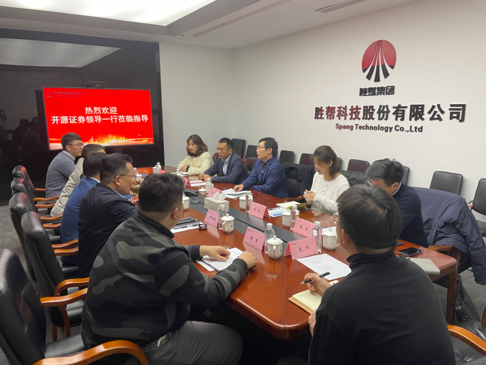 1月10日,開源證券副總裁楊彬一行到訪勝幫科技,雙方深入合作開展座談交流。勝幫科技董事長(zhǎng)李昊,總經(jīng)理沈和平,財(cái)務(wù)總監(jiān)尹偉林及公司有關(guān)職能部門負(fù)責(zé)人參加了座談。