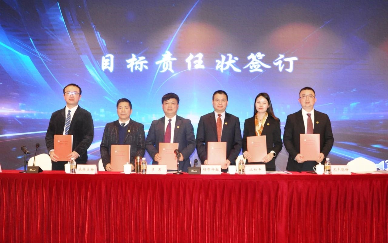 會上,勝幫科技所屬的貿(mào)易板塊、投資板塊、尤夫股份、派林生物等企業(yè)簽署了《2024年經(jīng)營業(yè)績目標(biāo)責(zé)任書》。公司副總經(jīng)理馮建華宣讀了勝幫科技2023年度先進集體、先進個人表彰決定,本次會議以現(xiàn)場+視頻的方式召開,在主會場參加會議的有:勝幫科技領(lǐng)導(dǎo)班子成員、所屬各單位、各部室負責(zé)人及上??偛咳w員工,陜西分公司及項目現(xiàn)場以視頻形式參會,公司副總經(jīng)理馮建華主持會議。