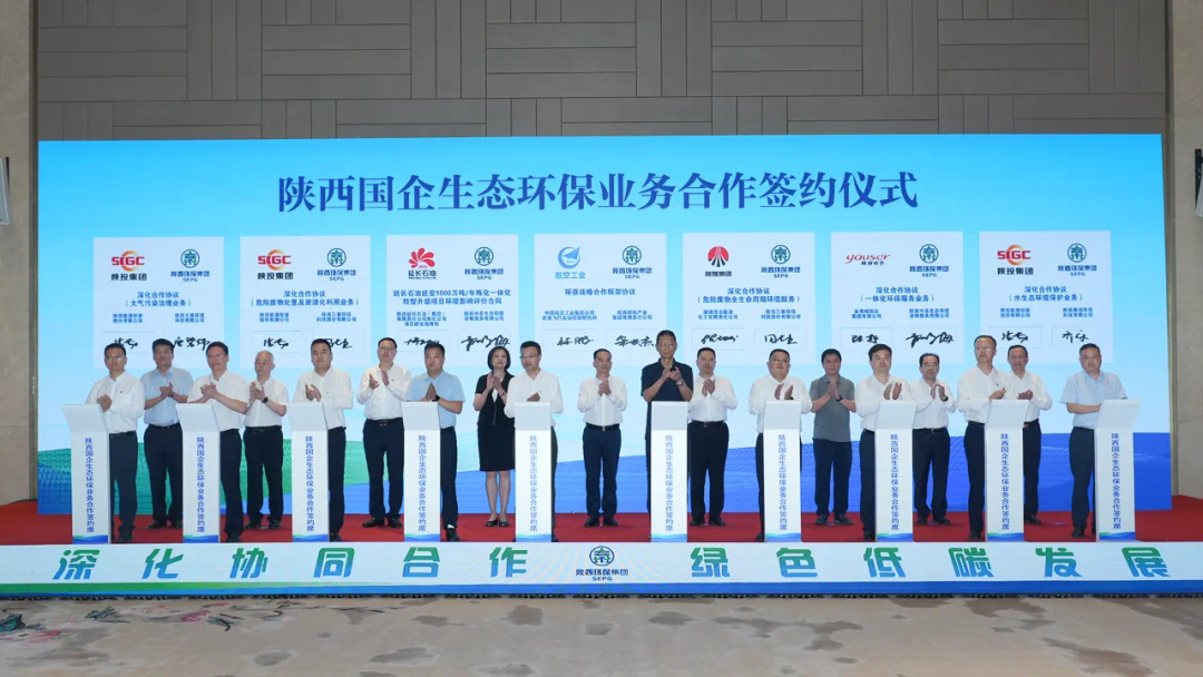 6月20日,“深化協(xié)同合作·推動(dòng)綠色發(fā)展”陜西國(guó)企生態(tài)環(huán)保業(yè)務(wù)合作座談會(huì)在西安召開(kāi)。陜西環(huán)保集團(tuán)與3戶(hù)駐陜央企、16戶(hù)省屬企業(yè)攜手共建生態(tài)環(huán)保領(lǐng)域產(chǎn)業(yè)發(fā)展及開(kāi)放合作體系,共同推進(jìn)陜西環(huán)保產(chǎn)業(yè)高質(zhì)量發(fā)展。省國(guó)資委黨委書(shū)記任國(guó),省生態(tài)環(huán)境廳黨組成員、副廳長(zhǎng)姚曉軍,省國(guó)有企業(yè)監(jiān)事會(huì)主席王春玲出席。