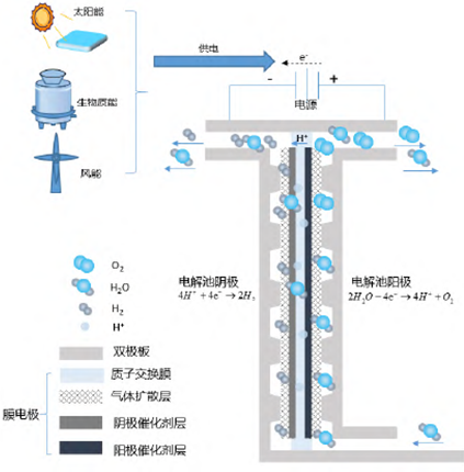 圖2.3-2 質(zhì)子交換膜電解池原理示意圖