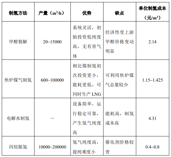 表2.4?2 工業(yè)制氫技術(shù)對比