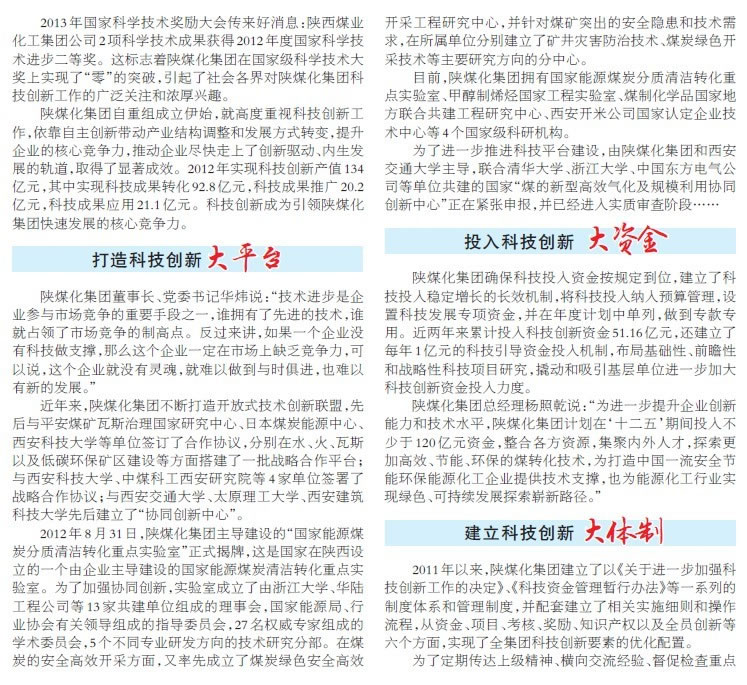光明日報(bào):陜煤化集團(tuán)科技創(chuàng)新引領(lǐng)跨越發(fā)展