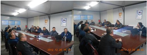 隨后,在建豐現(xiàn)場(chǎng)會(huì)議室舉行了2012年工作總結(jié)及交流會(huì),會(huì)議由周經(jīng)理主持,除張龍凱、朱強(qiáng)和柯兆雪外,部門(mén)所有員工參加了會(huì)議。