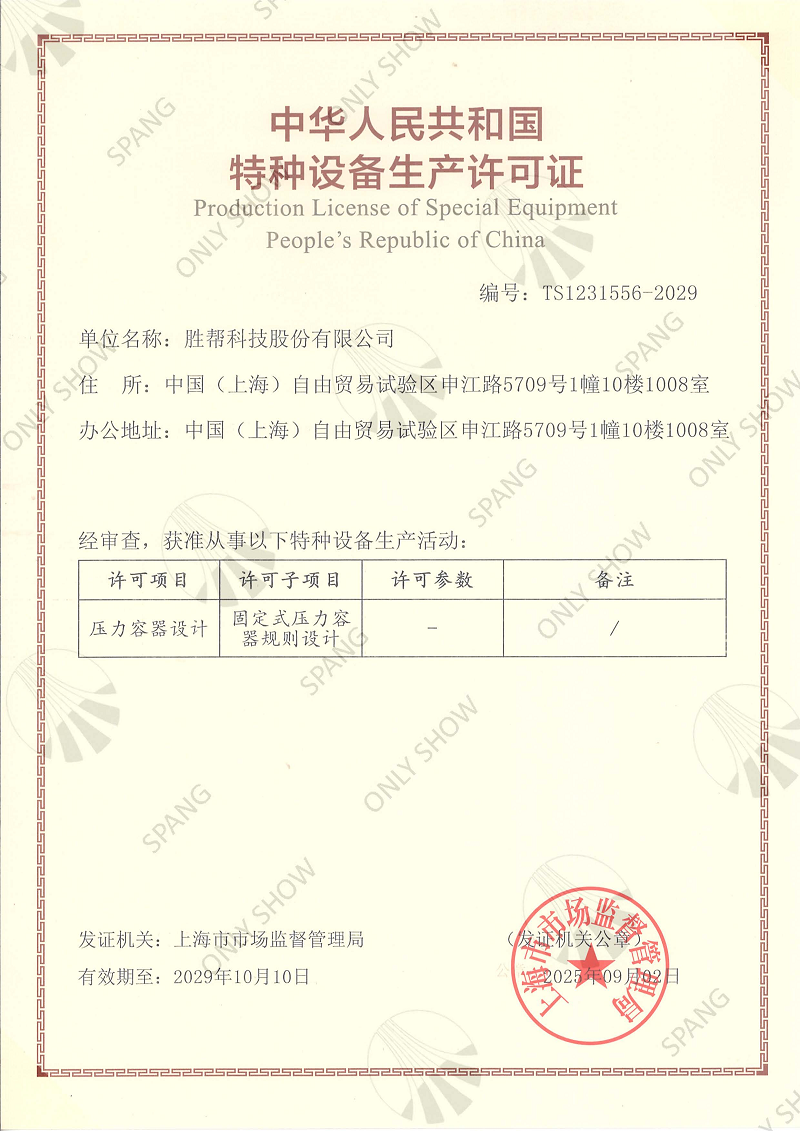 近日,勝幫科技喜獲由上海市市場(chǎng)監(jiān)督管理局頒發(fā)的特種設(shè)備生產(chǎn)許可證(壓力容器設(shè)計(jì))新證書(shū)。特種設(shè)備生產(chǎn)許可證(壓力容器設(shè)計(jì))四年換證一次,自2009年首次取證后,歷經(jīng)三次換證,本次已是公司第四次成功換證。