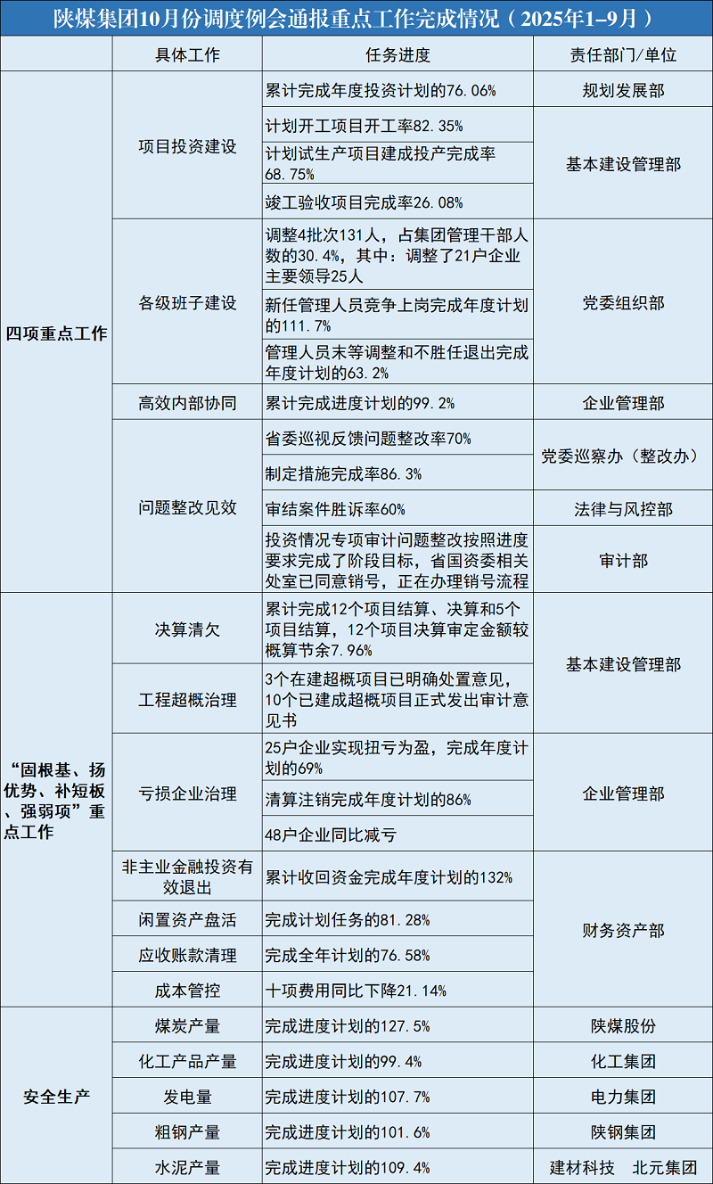 會(huì)議總結(jié)9月份重點(diǎn)任務(wù)完成情況,分析當(dāng)前工作存在的問(wèn)題和不足,安排10月份重點(diǎn)工作;相關(guān)職能部門分別匯報(bào)了項(xiàng)目投資建設(shè),高效協(xié)同發(fā)展,各級(jí)領(lǐng)導(dǎo)班子建設(shè),巡視巡察、內(nèi)部審計(jì)、涉訴案件問(wèn)題整改及安全環(huán)保、生產(chǎn)經(jīng)營(yíng)、閑置資產(chǎn)盤活、虧損企業(yè)治理等重點(diǎn)工作推進(jìn)情況。張文琪逐一對(duì)各部門工作進(jìn)展進(jìn)行點(diǎn)評(píng),肯定成績(jī)、指出問(wèn)題,并對(duì)下階段工作提出明確要求。