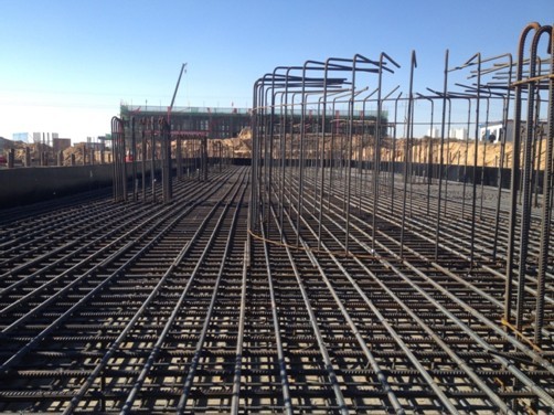 902單元構(gòu)-3筏板基礎(chǔ)連夜綁扎就緒,次日準備澆筑