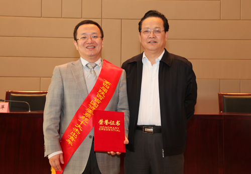 集團(tuán)公司黨委副書(shū)記馬富元與省國(guó)資委“十大杰出青年”高暐合影