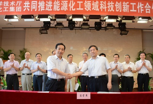 陜西省科技廳廳長(zhǎng)李明遠(yuǎn)、副廳長(zhǎng)安西印及科技廳相關(guān)部門(mén)負(fù)責(zé)人;陜煤化集團(tuán)董事長(zhǎng)華煒,總經(jīng)理?xiàng)钫涨?,副總?jīng)理尚建選以及陜煤化技術(shù)研究院相關(guān)負(fù)責(zé)人參加了簽字儀式。簽字儀式由省科技廳副廳長(zhǎng)安西印主持。