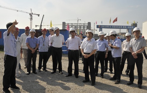 16日下午,集團公司董事長華煒、副總經(jīng)理尤西蒂,中國長江三峽集團副總經(jīng)理畢亞雄一行,在蒲城清潔能源化工公司董事長劉培榮、總經(jīng)理范立明的陪同下,冒著酷暑深入現(xiàn)場,查看施工進展情況。在該公司PP(聚丙烯)裝置施工現(xiàn)場,華煒、畢亞雄邊走邊詳細詢問目前項目的施工進度,在看到現(xiàn)場如火如荼地施工場面和拔地而起的一座座裝置建筑時,他們不住點頭,對項目建設(shè)給予了贊揚和肯定。