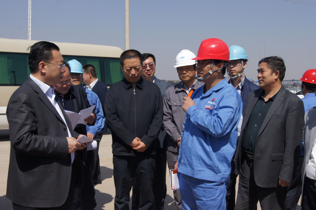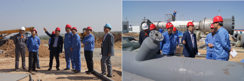 2015 年4 月27 日上午11 時,陜西省榆林市人大常委會主任、市黨組書記胡志強,榆陽區(qū)區(qū)委書記苗豐,陜北礦業(yè)董事長李強林等一行來我乾元項目部進行視察。陜北乾元公司副總衛(wèi)東向市領導詳細介紹了5 萬噸/年氣固熱載體粉煤熱解工業(yè)試驗項目的技術概況、工藝流程、裝置組成及施工進度。