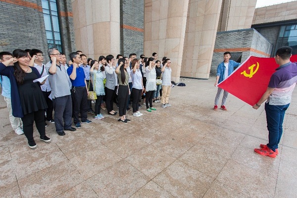 “新黨員宣誓及老黨員重溫入黨誓詞”儀式在莊嚴雄渾的國際歌后正式開始。在南湖革命紀念館宣誓墻前所有預備黨員及正式黨員高舉右手面對鮮紅的黨旗莊嚴宣誓,在領(lǐng)誓人的帶領(lǐng)下對黨鄭重許下諾言。預備黨員和老黨員代表都做了激情澎湃的發(fā)言,而后公司黨委領(lǐng)導對廣大新老黨員提出要求,希望各位黨員同志要發(fā)揚黨的優(yōu)良傳統(tǒng),牢記全心全意為人民服務(wù)的宗旨,在各自的工作崗位上加倍努力,充分發(fā)揮黨員先鋒模范作用,無愧于共產(chǎn)黨員的光榮稱號。最后,在高亢激昂的義勇軍進行曲中宣誓儀式正式結(jié)束。