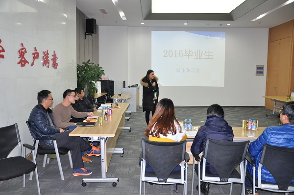 2017年1月11日,是一個值得紀(jì)念的日子,經(jīng)過半年的努力奮斗,2016屆畢業(yè)生全體成功通過各項(xiàng)考核,正式轉(zhuǎn)正了。為促進(jìn)師徒之間的交流、更好的開展“師徒幫帶”工作,提高新大學(xué)生工作積極性和歸屬感,人力資源部在公司一樓培訓(xùn)室組織開展了畢業(yè)生轉(zhuǎn)正茶話會。