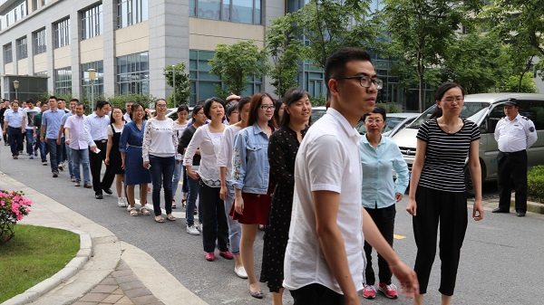 6月14日下午兩點(diǎn),在一陣急促的“火災(zāi)”報(bào)警模擬哨聲中,勝幫科技公司2017年度辦公樓“消防安全疏散演練”活動(dòng)正式拉開(kāi)帷幕。