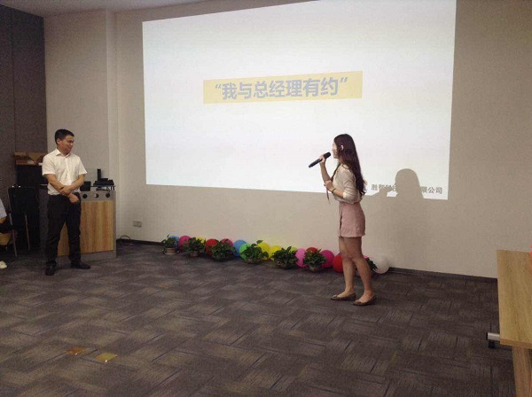 隨著“我與總經(jīng)理有約”創(chuàng)意游戲的開始,歡迎會(huì)被推向高潮。一名新入職大學(xué)生獲得了和總經(jīng)理面對(duì)面交流暢談未來職業(yè)規(guī)劃的機(jī)會(huì)。