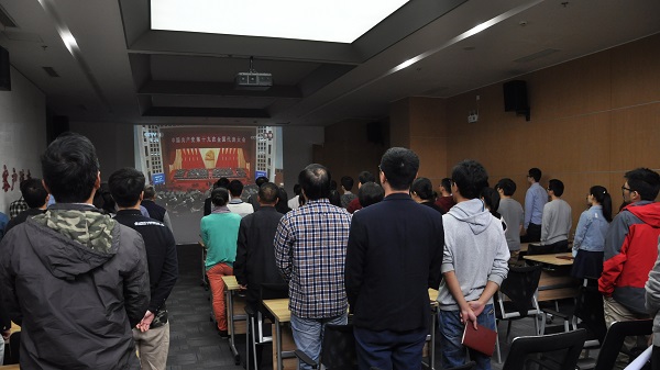 觀看期間,大家仿佛置身于大會現場,聚精會神聽報告,時而激動,時而自豪,時而驕傲,表現出了對黨的無限熱愛及對黨的十九大開幕會的熱切期待。